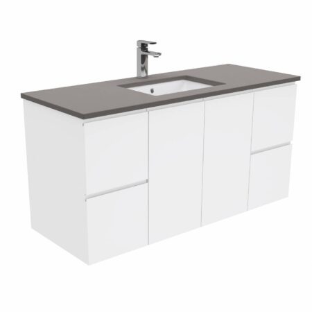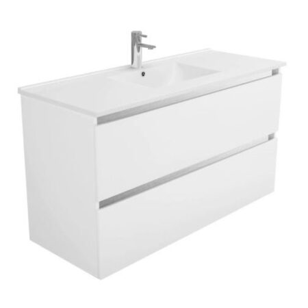 Wall hung vanities create a floating look and make smaller bathrooms feel bigger. A wall hung vanity also helps with cleaning the floor underneath. If you prefer the term wall-hung, the same sleek style applies with a focus on minimal lines. We stock wall-hung vanities that balance storage with a streamlined profile, ideal for apartments and modern homes.