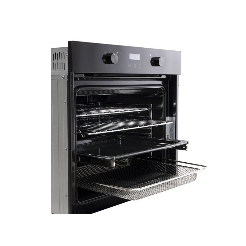 60cm Multifunction Oven LED Program Clock + Air Fry All Black Oven: