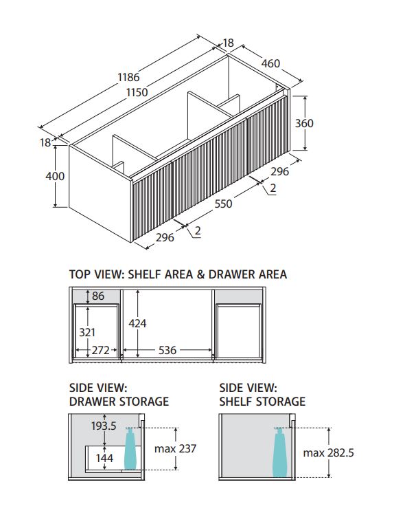 The Alina cabinet features stylish square groove fluting and a discrete pull-channel. This sleek, wall-hung design creates an illusion of space with large drawers for storage.