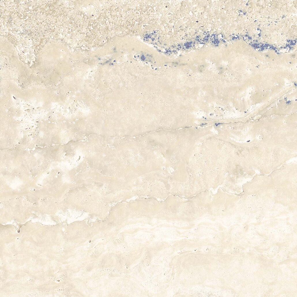 FLORA LAPIS combines the warm, natural beauty of travertine and Daïno with delicate lapis lazuli inlays, creating a luxurious stone-look tile with a unique visual depth.
