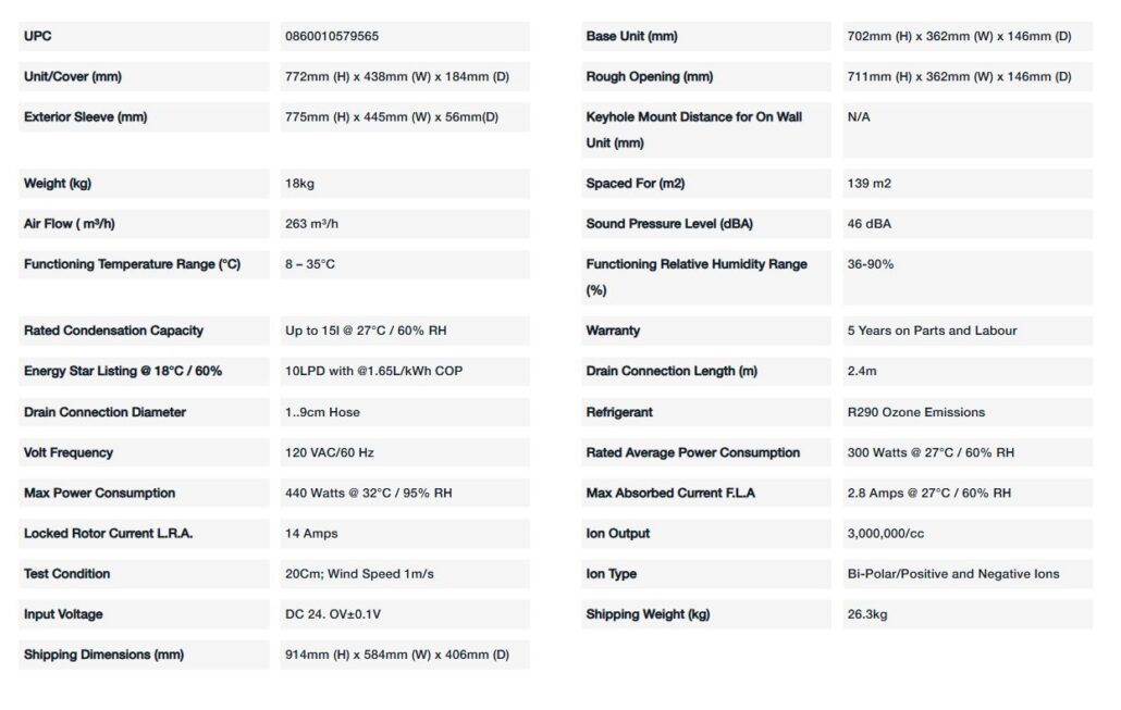 The IW25-5 In Wall Dehumidifier with combined Bi-Polar Ionisation Technology controls excessive moisture that contributes to poor indoor air quality, property damage, mould, comfort complaints, and possible liability risks. The IW25-5 in wall dehumidification system helps lower indoor relative humidity helping prevent moisture issues. The easy to install built-in dehumidifier system is suited for both new construction and retrofit installations in multi-unit, hotels, student housing, and residential applications.