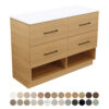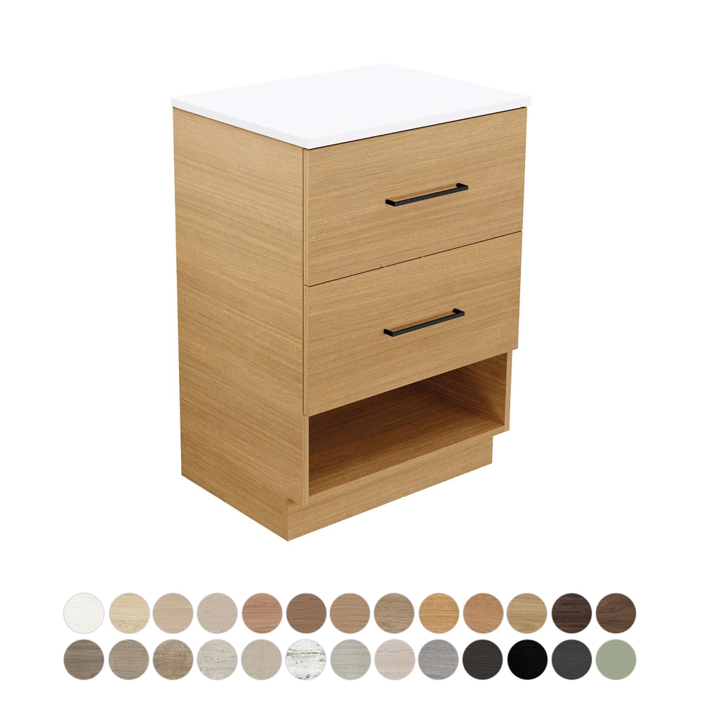 The Australian made Kassi vanity blends the perfect combination of design and function with large drawers and an open bottom shelf for convenient storage. The open design captures an airy feel that is ideal for bathrooms or ensuites to amplify the space.