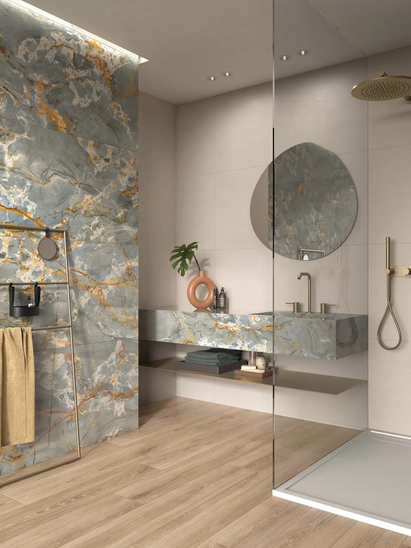 Roma Imperial Natural is a contemporary celebration of Renaissance-inspired luxury, blending vibrant marble tones, refined contrasts, and geometric elegance into a truly modern design statement.