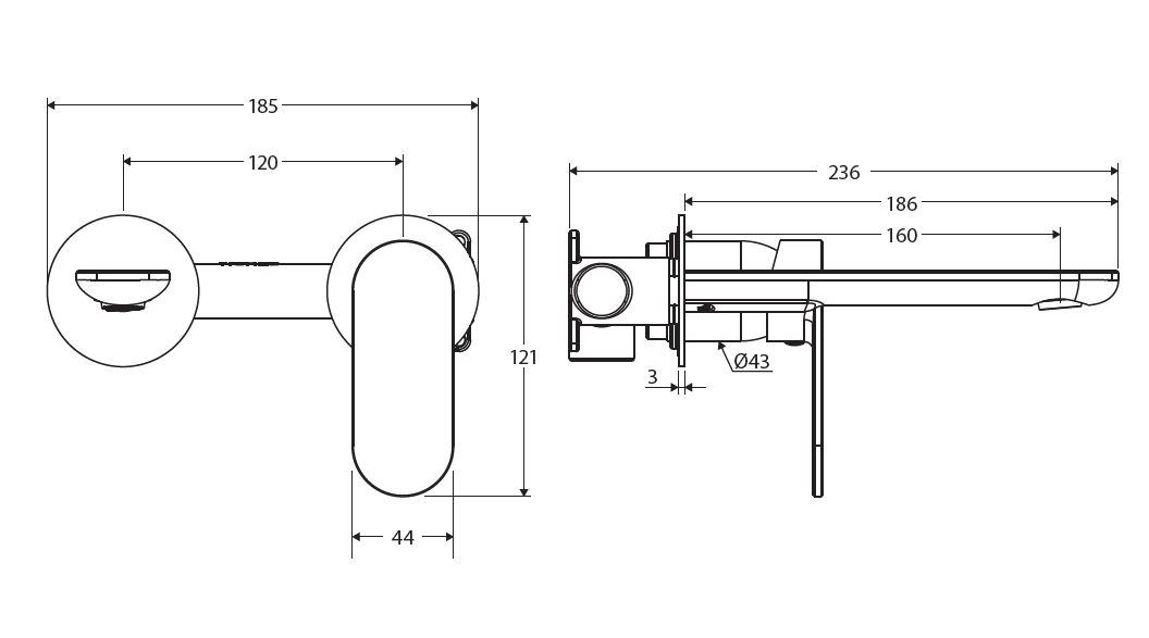Shelly Slim 160mm Basin/Bath Wall Mixer Set, Round Plates (5 Colours)